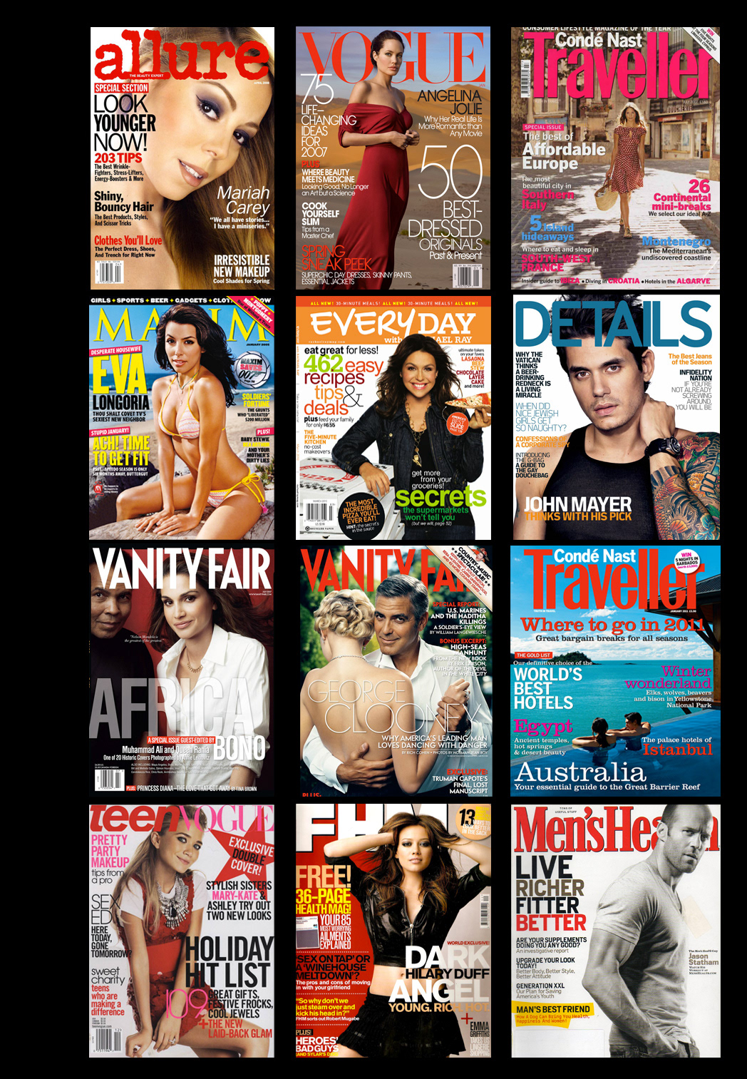 Conde Nasté publications : Details, Allure, AD, Bon Appétit, Epicurious, Wired, W, Golf Digest, Teen Vogue, Mens Health, Women's Health, Self, Traveler, Vanity Fair. 2004-2014